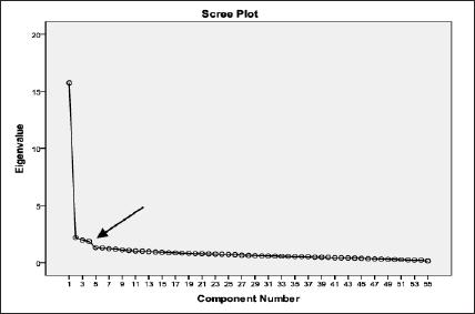 Dada a existência de tão elevado número, de entre os diferentes métodos preconizados por Maroco (2007) optamos pelo gráfico scree plots, de forma a confirmar o número de fatores a reter.