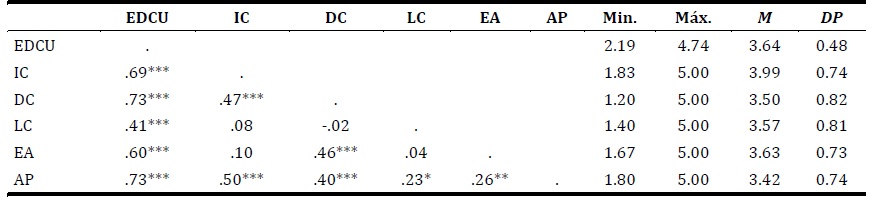 Nota. EDCU = Escala de Desenvolvimento de Carreira; IC = Identidade de Carreira; DC = Decisão de Carreira; LC = Locus de Controlo; EA = Exploração Ampliada; AP = Autoeficácia Profissional