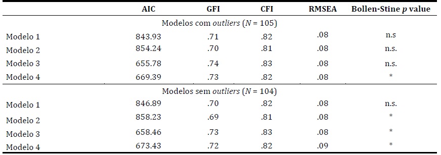 Tabela 3 Índices de ajustamento para os modelos de medida especificados: N = 105.