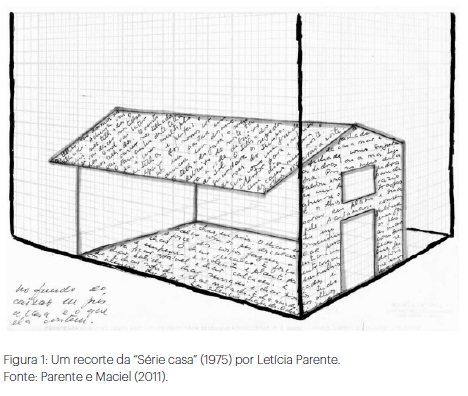 Diante dos móveis, quartos e rotinas, a artista Letícia Parente - mulher, nordestina, mãe, professora de química por formação e artista visual por libertação - compreendia e vivia os conflitos do cotidiano doméstico, transitando em jornadas de múltiplas identidades. Em seus trabalhos Letícia pretendia expor os embates experimentados por ela ao falar sobre a condição da mulher na sociedade brasileira das décadas de 1970 e 80. Em especial a “Série casas” (1975), é uma das produções da artista que representa esse território condicionado ao gênero feminino como parte constituinte da construção do espaço territorial do corpo da artista.
