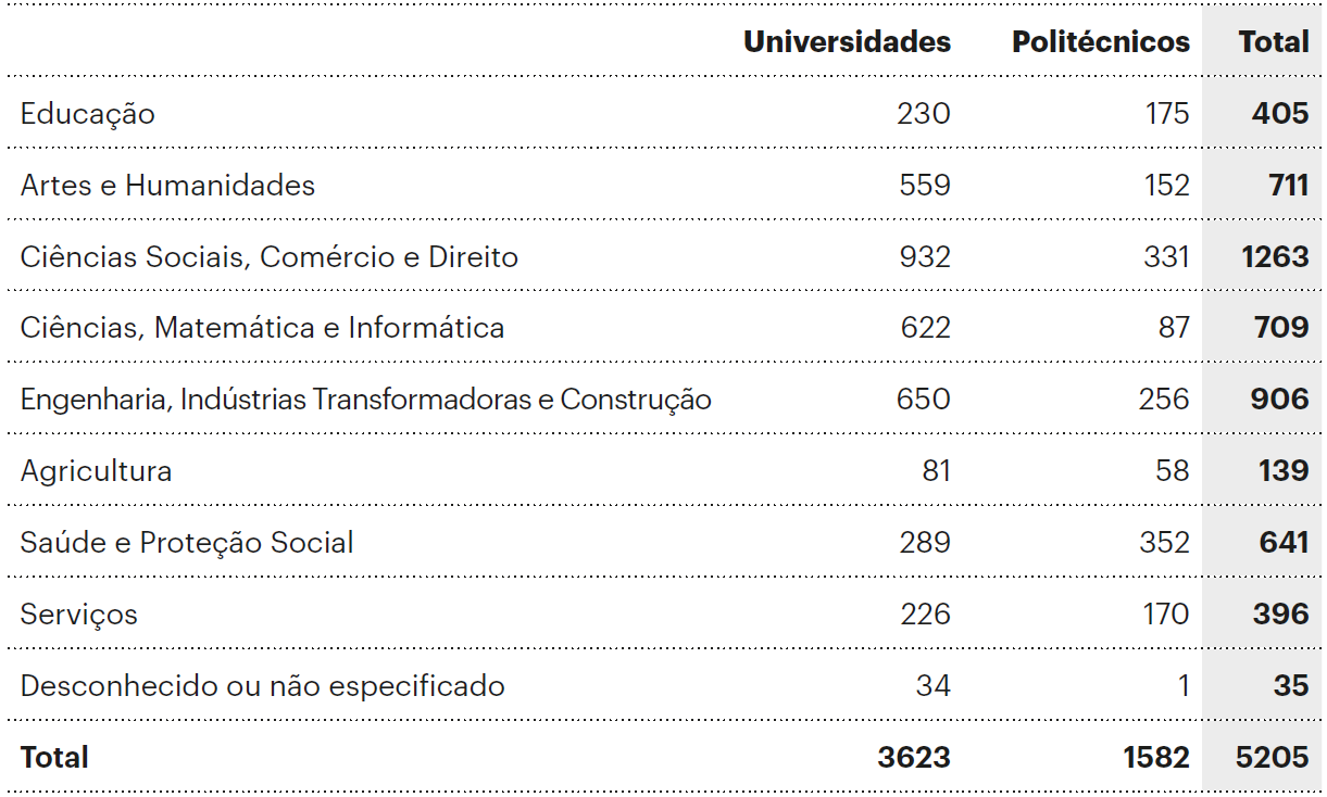 1. Para mapear a presença de programas conferentes de grau e UC específicas de EMGF, foi realizada uma análise dos planos de estudo (currículo do curso) de todos os cursos de 1.º, 2, º e 3.º ciclos oferecidos no universo das IES em Portugal. As tabelas de descrição do universo de IES e cursos que constituíram a base da pesquisa são apresentadas de seguida5.