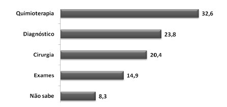 O câncer de mama e o câncer ginecológico têm grandes repercussões na qualidade de vida do paciente, desde a constatação do diagnóstico até mesmo na adaptação pós cirúrgica. No presente trabalho, as participantes foram questionadas quanto ao conhecimento da cirurgia a que seriam submetidas, e 13,6% afirmaram que não tinham tal conhecimento. Quando questionadas sobre o momento de maior dificuldade ao longo do tratamento, observa-se que as pacientes apresentaram posicionamentos diferentes, o que sugere dificuldade em eleger apenas um momento. Apesar de 32,6% apontar a quimioterapia como o momento mais difícil do tratamento, 23,8% e 20,4% apontaram como sendo o momento do diagnóstico e da cirurgia, respectivamente. Além disso, 8,3% das pacientes não conseguiram definir apenas um desses momentos. Os dados obtidos são condizentes com os encontrados na literatura, que descrevem que as mulheres relatam dificuldades em todos os momentos do tratamento, desde o diagnóstico à cirurgia (Barros & Lopes, 2007; Silva & Santos, 2008).