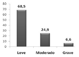 II - Escala Hospitalar de Ansiedade e Depressão (HAD) (Zigmond & Snaith, 1983): A HAD contém 14 itens com quatro alternativas de respostas, divididas em sete questões referentes ao estado de ansiedade e sete referentes a sintomas depressivos. Quanto à aplicação da escala, solicitava-se que a paciente indicasse a alternativa de resposta que melhor descrevesse seus sentimentos da última semana. A HAD pontua os sintomas de ansiedade e depressão obedecendo a três níveis: leve (0 a 6 pontos), moderado (7 a 12 pontos) e grave (13 pontos ou mais). A escala possibilita ao profissional um auxílio na identificação mais criteriosa dos sintomas presentes, sendo uma ferramenta de auxílio no diagnóstico de um episódio depressivo. A HAD foi utilizada na versão traduzida e adaptada ao português brasileiro (Botega, 1995).