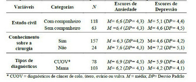Concluindo, a identificação precisa de sintomas de ansiedade e depressão permite estabelecer planos de intervenções psicológicas específicos para mulheres com diagnóstico de câncer.