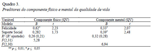 As associações encontradas acima sugerem que algumas variáveis psicológicas podem constituir determinantes significativos da QV nos indivíduos com LVM. Para ambos os componentes da QV, testou-se a felicidade e o SS, verificando-se que o modelo era válido e o melhor preditor.