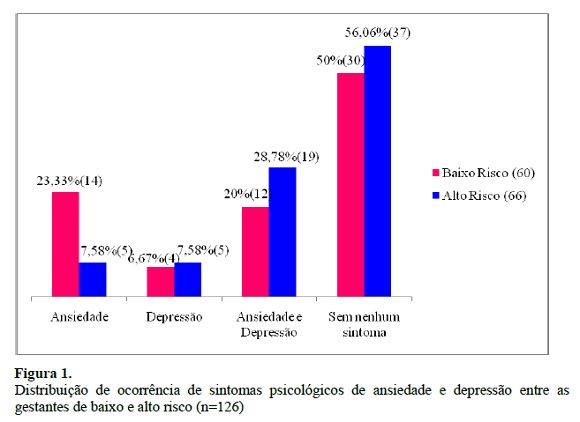 Quando analisada a presença concomitante de ambos os sintomas de ansiedade e depressão, as gestantes de alto risco apresentam médias maiores em relação às gestantes de baixo risco. Dado semelhante foi encontrado na correlação desses mesmos sintomas psicológicos (ansiedade e depressão) com a variável do estresse, onde se constatou relação significativa apenas com gestantes de alto risco, ou seja, gestantes com ansiedade e depressão apresentam maiores médias de estresse. Tais achados possibilitam a reflexão de que a patologia na gestação acarreta maiores custos emocionais às mulheres, ou seja, a ameaça de problemas para a saúde da mãe e do bebê bem como a necessidade de tratamentos específicos durante a gestação demandam da mulher estratégias de enfrentamento bem desenvolvidas e, nos casos em que tais estratégias não se encontram consolidadas, podem aparecer distúrbios psicológicos para os quais há necessidade de intervenção especializada.