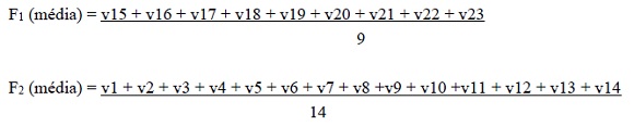 Para cada indivíduo será calculada a média aritmética do fator 1 e do fator 2, separadamente. Assim, temos: