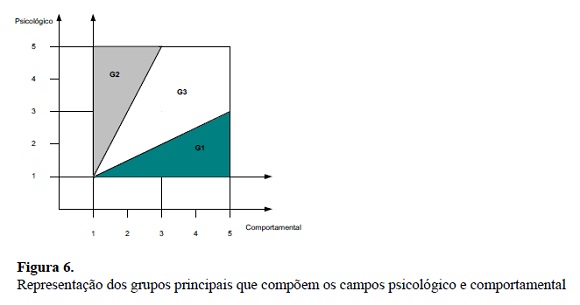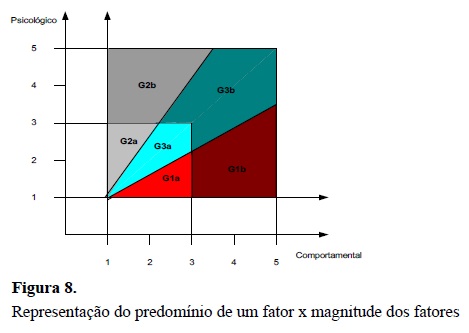 G2 = Formado por indivíduos com predomínio do fator psicológico sobre o fator comportamental (F2/F1).