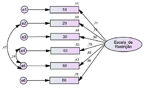 Na análise fatorial confirmatória, ambos os construtos, ajustamento psicossocial e restrição nas atividades, apresentaram um bom ajustamento. As escalas de ajustamento psicossocial mantiveram o mesmo conjunto de itens tal como na versão original. A escala de restrição nas atividades, constituída originalmente por 10 itens num fator unidimensional, na versão portuguesa mostrou-se mais adequada e ajustada apenas com seis itens, tendo sido excluídos os itens 7, 8, 9 e 10.