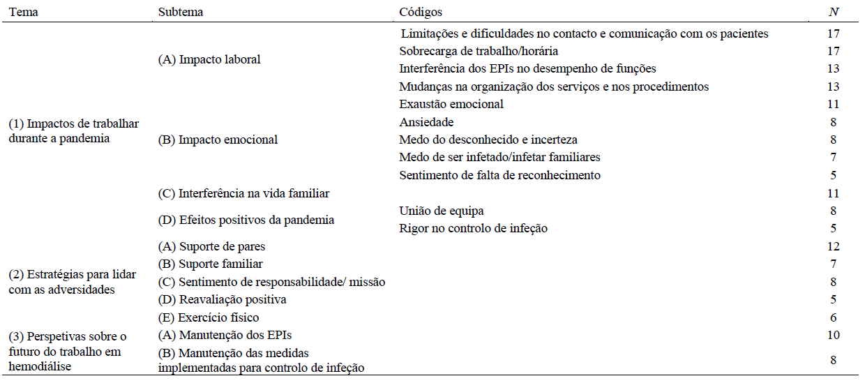 Na análise qualitativa das entrevistas foram identificados três temas principais (cf. quadro 2): (1) Impactos de trabalhar durante a pandemia; (2) Estratégias para lidar com as adversidades; e (3) Perspetivas futuras sobre o trabalho em HD.