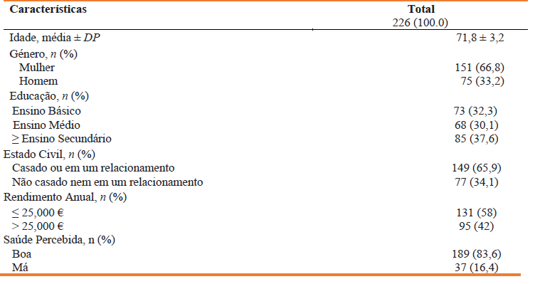 O recrutamento decorreu por contacto direto com pessoas idosas através de universidades seniores e centros comunitários dos países em estudo. Inicialmente os participantes disponibilizaram um contacto de forma a puderem responder a um questionário online (e.g., Skype, Survey Monkey, Zoom e WhatsApp). Participaram 226 indivíduos idosos neste estudo, sendo 96 (42,5%) mexicanos e 130 (57,5%) portugueses (ver Quadro 1).