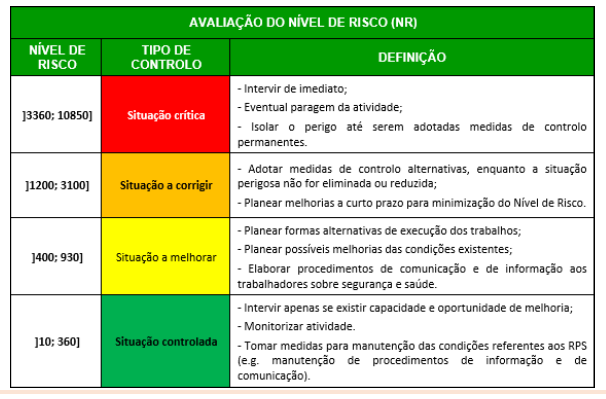 Para os RPS identificados no SGSST, à semelhança do que deverá acontecer aos riscos de outras naturezas, terá que ser definida uma metodologia complementar que permita atribuir um nível de risco individualizado aliado à necessidade de intervenção e à urgência da mesma. Permitindo assim às organizações priorizarem as intervenções identificadas, seguindo: