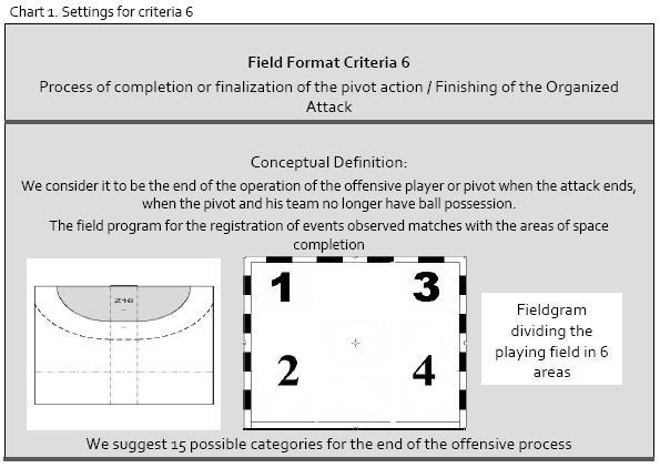 We end the operation of the offensive player or pivot by finishing the attack, when the pivot and his team no longer have possession of the ball. The field program for the registration of events observed fit in with the areas of space completion.