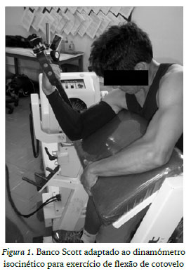 A sessão de exercício resistido foi composta por quatro séries de 10 repetições unilaterais de flexão de cotovelo realizado no dinamómetro isocinético a 60º.s−1 de velocidade. O intervalo de recuperação entre as séries foi de um minuto e o exercício foi realizado no membro considerado dominante de cada voluntário.