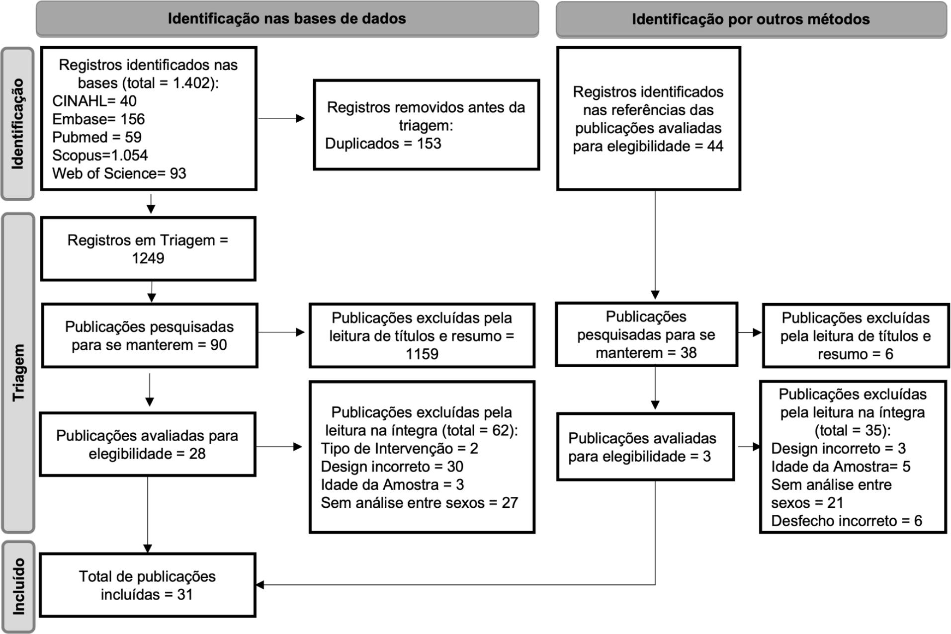 A maioria dos estudos analisados (n= 19; 61,3%), não apontaram diferenças significativas entre os sexos após a intervenção e todos eles foram classificados com alta ou média qualidade (42,1% de estudos de alta qualidade e 57,9% de estudos de média qualidade), o que proporciona dados mais confiáveis e precisos.