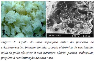 Com efeito, a remoção da gordura, sangue, medula óssea e membranas celulares, permite a produção de enxertos com uma estrutura aberta, porosa, tridimensional, propícia à recolonização de novo osso (Figura 2) e, também, a preservação das propriedades viscoelásticas do osso trabecular, fator que os distingue dos substitutos sintéticos do osso.