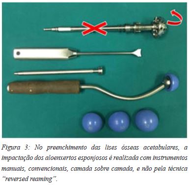 A preparação e a impactação de aloenxertos granulados esponjosos na reconstrução de lises ósseas acetabulares na cirurgia de revisão de próteses da anca, pode incluir a lavagem dos enxertos e o uso de instrumentação manual. O tamanho dos fragmentos ósseos entre 7-10 mm é um dos fatores críticos para se conseguir alcançar o sucesso da reconstrução cirúrgica.