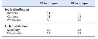 The null hypothesis was that there was no difference in clinical performance between the ER and SE application modes.