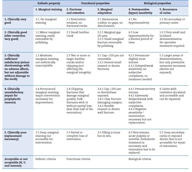 Table 4 Number of evaluated restorations for each experimental group classified according to the World Dental Federation (FDI) criteria