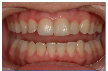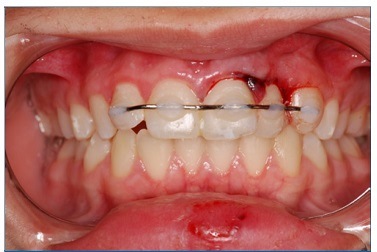 The clinical procedures are summarized in chronological order in Table 1. Firstly, under local anesthesia with 2% lidocaine with 1:100,000 epinephrine (Nova DFL, Rio de Janeiro, Brazil), surgical reduction of teeth 21 and 22 was performed (Figure 4). Subsequently, semi‑rigid splitting of teeth 12‑23 was performed with a 0.4‑mm