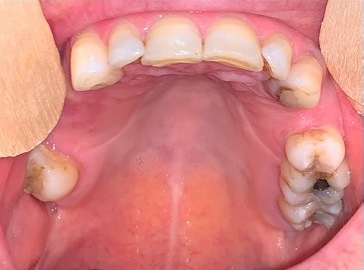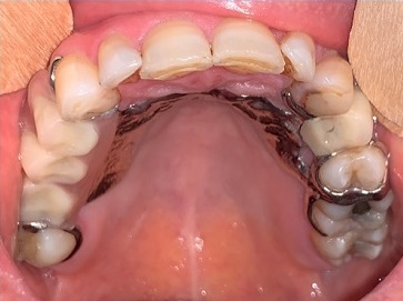Figura 9 Regressão total da lesão anteriormente observada hemi‑palato (com prótese removível esquelética)