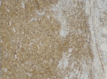 Figura 5 Análise imunohistoquímica, evidenciando positividade para CD10