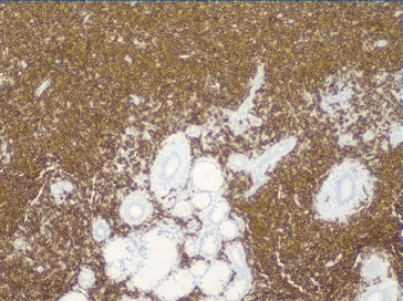 Relativamente à imunohistoquímica as células tumorais expressam antigénios associados às células B (CD19, CD20, CD22, CD79a) e são usualmente positivos para BCL2, BCL6 e CD10 e negativos para CD5 e CD43.6