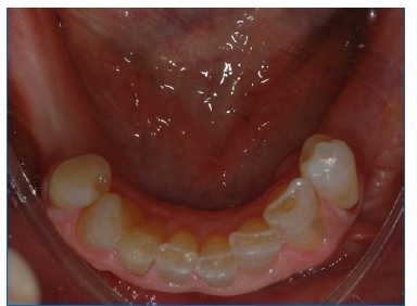 A 74‑year‑old female patient, systemically healthy, presented at the Faculty of Dental Medicine, University of Lisbon. The primary reason for the dental appointment was to rehabilitate the lower arch after having already undergone a well‑adapted superior rehabilitation without complaints. The patient presented a Kennedy Class I (Figure 1). The treatment plan, for economic reasons, was a mandibular RPD replacing teeth 37, 36, 35, 45, 46, and 47.