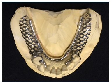 The present clinical case study aimed to describe the effectiveness of the SLM technique in producing a Cr‑Co metal framework of a mandibular RPD. No adjustments were required when the metal framework was inserted, showing good stability and adaptation to the abutment teeth and surrounding tissues. More experimental and clinical studies are needed to evaluate this technique. Also, additional studies are needed to compare RPD frameworks fabricated by conventional, milling and SLM technique.10