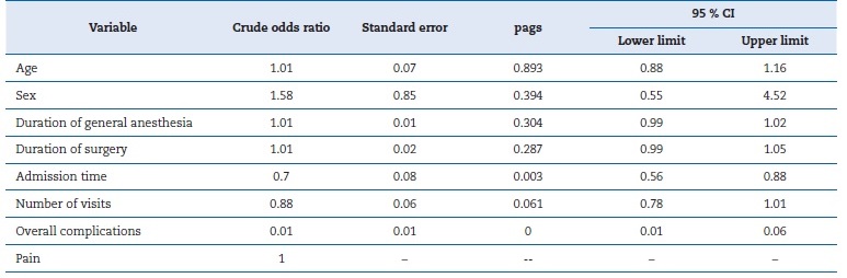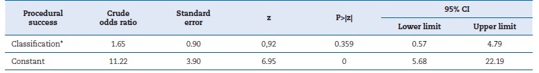 Crude odds ratio: unadjusted odds ratio; pags:; 95% CI: 95% confidence interval. The main outcome variable is success (successful surgery).