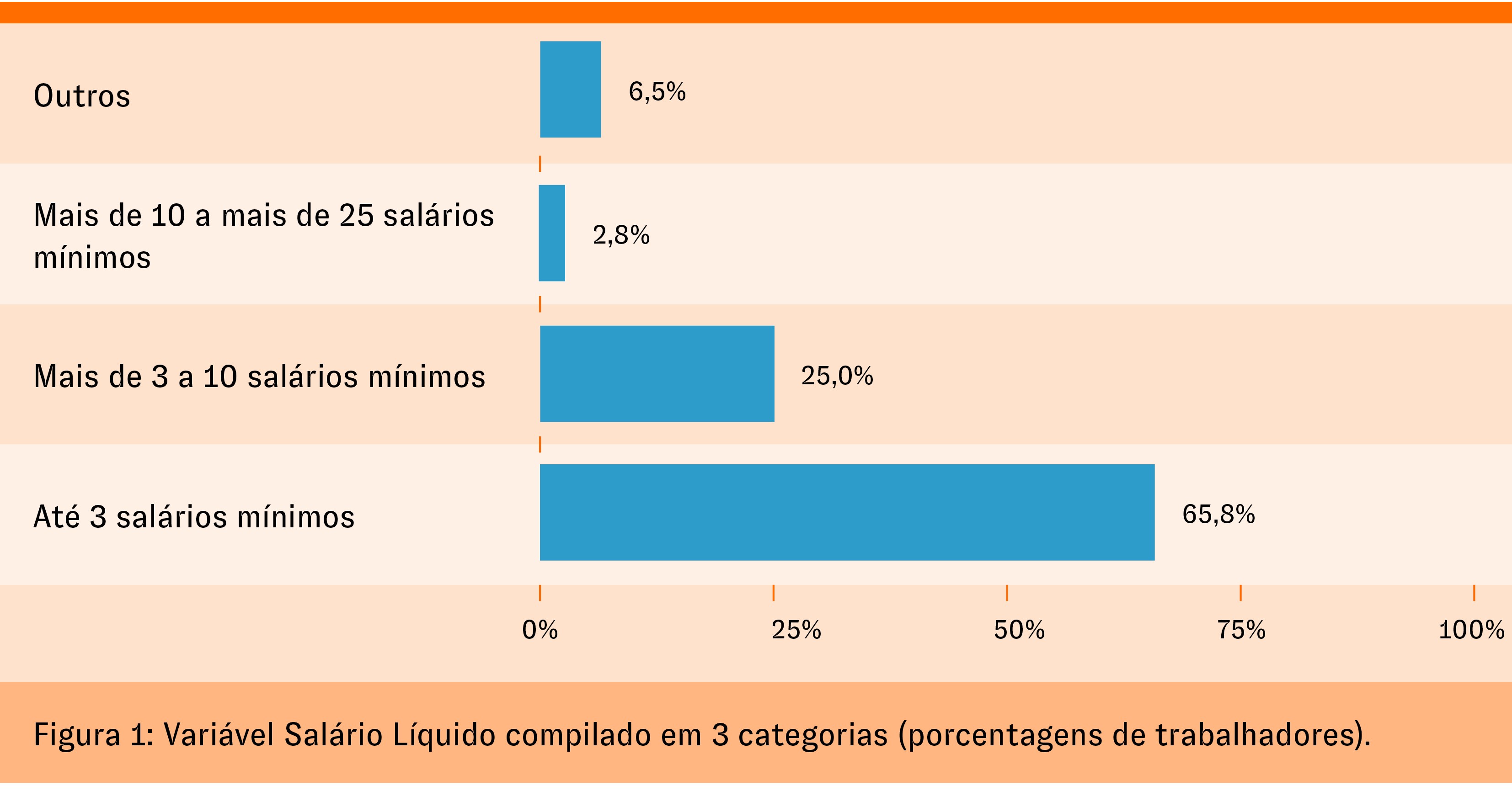 Figura 1 : Variável Salário Liquido compilado em 3 categorias (porcentagens de trahadores)