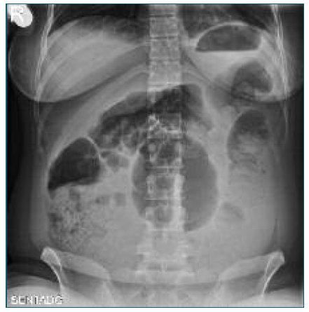 Figure 1 Abdominal X-ray performed due to suspected intestinal obstruction, revealing displaced and distended intestinal loops with obscuration of the psoas muscle contour. These findings are nonspecific and have low sensitivity for detecting retroperitoneal hemorrhage, notably in low- to moderate-volume hematomas.
