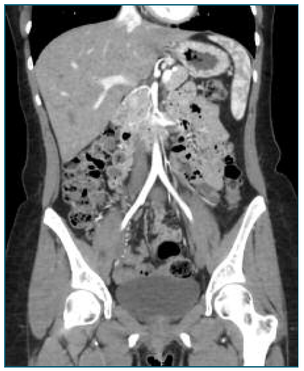 Acute retroperitoneal hemorrhage is a critical situation that may arise from various conditions, including iatrogenic (e.g abdominal trauma, surgical interventions) and spontaneous causes of arterial rupture, generally due to oncological or vascular disorders1. Arterial aneurysms and pseudoaneurysms are recognized causes, both distinguished by vessel wall integrity. Regarding pseudoaneurysms, the vessel’s wall becomes disrupted, potentially leading to the formation of periarterial hematomas and subsequent significant hemorrhage. Although vascular rupture has been documented in postmenopausal women, most cases occur during pregnancy or the peripartum period. The affected vessels often include the aorta, splenic, and renal arteries1,4. Since the first documented case of pregnancy-related OAA rupture in 1963, only 30 other cases, including ours, have been reported1-4. Pseudoaneurysms are even rarer than OAA, making this case of particular interest.