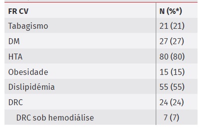Os fatores de risco cardiovasculares (FR CV) mais prevalentes na amostra encontram-se apresentados na Tabela 1.