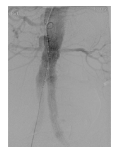 Fig 5: Final completion angiogram. Deployed modified Zenith® CE Fenestrated Stent Graft with patent renal and visceral arteries and absence of endoleaks.