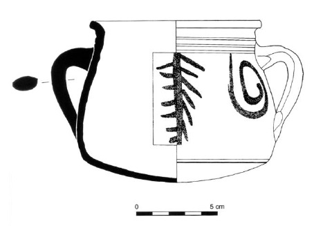 Outras formas de Palmela que durante o século XIII apresentam diferenças de pormenor com os seus referentes islâmicos são os cântaros ou os alguidares, muito embora seja mais rara a pintura a branco nestes recipientes, face a períodos anteriores. Novamente, são as jarras que apresentam semelhanças irrepreensíveis com as suas congéneres anteriores. Nesta localidade, surgem ainda em período islâmico formas carenadas para consumo de líquidos, geralmente designadas por púcaros ou copos, que circulam a par do perfil mais comum, de jarra com duas asas (Fig. 8). Serão estes dois modelos e seus derivados a dominar os conjuntos artefactuais até ao século XIV73. Assinale-se, no entanto, que se verifica uma diminuição evidente do reportório formal após a conquista cristã, rareando por exemplo as formas abertas. Esta constatação derivará da proveniência da maioria dos materiais analisados, a alcáçova do castelo da cidade. Tendo sido ocupada por elementos alógenos, membros da Ordem de Santiago, nomeadamente quando instalaram neste castelo a sua casa-mãe (c. 1194-1217), é natural que outros hábitos alimentares se tenham traduzido na escolha das formas mais utilizadas. De acordo com esta constatação, verifica-se que o tratamento de superfície mais disseminado passa a ser a estriagem, substituindo a pintura a branco, sendo de admitir que as particulares condições políticas e demográficas do hisn Balmalla, um pequeno assentamento militar quando comparado com Lisboa ou Santarém, tenha permitido um maior contributo cultural dos contingentes setentrionais na evolução da produção cerâmica, à imagem do que já se propôs para Torres Vedras. No caso de Palmela esse processo correu em paralelo com a presença de uma comunidade muçulmana organizada em comuna, menorizando, uma vez mais, uma correspondência unívoca entre a expressão populacional dessa minoria e a vitalidade comparativa de caracteres meridionais.