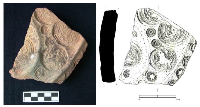 Fig. 5 Tigela vidrada estampilhada (Núcleo Arqueológico da Rua dos Correeiros, n.º de inventário MNA 2018.16.20355), uma produção almóada na Lisboa do século XIII.
