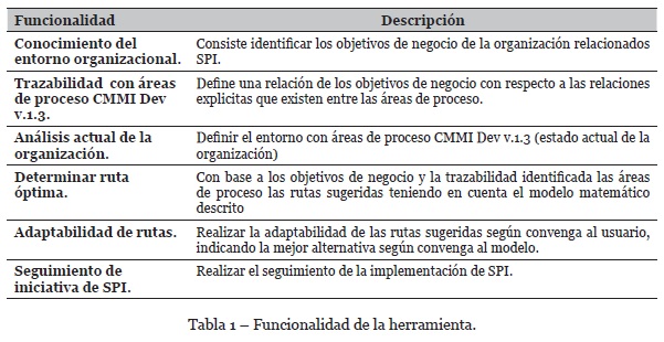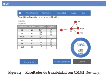 Asimismo, apoyado en la herramienta permite obtener una visualización de los requerimientos necesarios para iniciar los programas de SPI, de tal forma, que se pueda realizar un análisis de los procesos definidos con respecto a los requisitos por el modelo. Y además, permite realizar un seguimiento al cumplimiento de la implementación de las buenas prácticas que requiere cada una de las áreas de proceso.