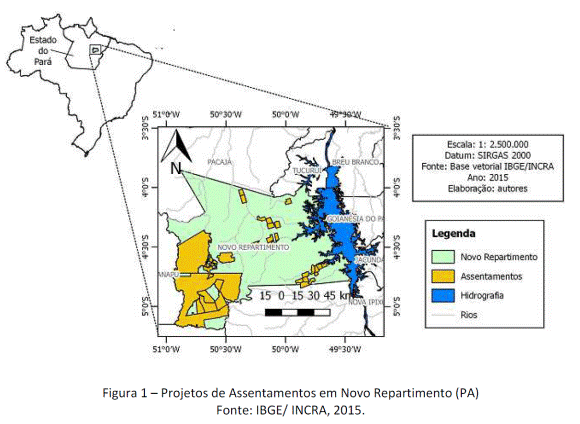 Para esse estudo, foi dada ênfase aos 31 projetos de assentamentos rurais, compreendidos em uma área total de 376 767,90 hectares, representando 24,5 % da área total do município (Figura 1).