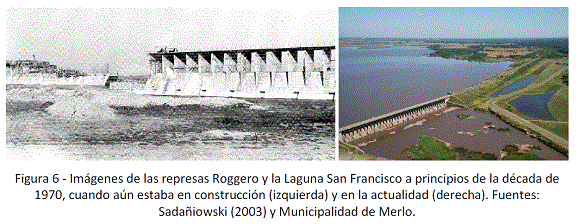 Desde esa clave, la construcción de la represa Roggero fue iniciada en 1967 y concretada en 1972 (Figura 6). A ella se sumaron, posteriormente, dos obras de presas menores en los tributarios del Reconquista: la presa Marín sobre el arroyo La Choza, y la presa El Durazno, en el arroyo homónimo. Si bien lograron reducir los picos de crecida máxima a una recurrencia de 100 años, la puesta en funcionamiento del sistema de retención -en su conjunto- tuvo algunos vaivenes políticos y técnicos hasta la década de 1990 (Sadañiowski 2003).