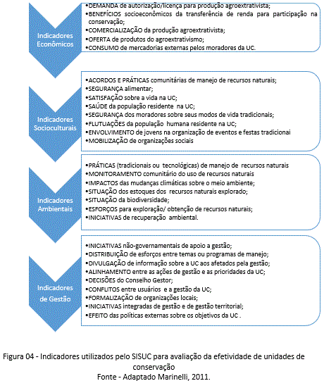 MARINELLI, C. E. De olho nas unidades de conservação: Sistema de Indicadores Socioambientais para Unidades de Conservação da Amazônia Brasileira. Instituto Socioambiental. São Paulo. 2011. 12. p. [ Links ]