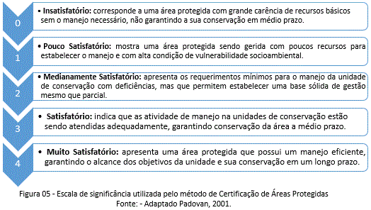 O estabelecimento da pontuação na metodologia, permite a comparação entre cenários e o desenvolvimento do processo de evolução. Isso possibilita o reconhecimento dos pontos fortes e fracos dos modelos de gestão instituídos. Ressalta-se que este processo de certificação utiliza parâmetros de referência previamente estabelecidos, definindo os níveis de desempenho que a UCs devem cumprir, de acordo com o seu instrumento de criação, a categoria de manejo e os objetivos estabelecidos pela UICN/WCPA.