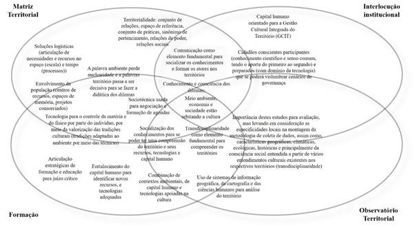 A Figura 1 reflete a discussão sobre GCIT, sem a finalidade de delimitar um conceito geral, mas de mostrar a importância da transdisciplinaridade, objetivando discutir os territórios em toda a sua complexidade cultural, social, econômica e ambiental.