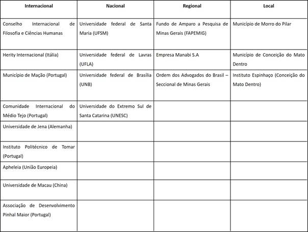 É nesse sentido mais global que a gestão cultural integrada de território foi proposta na Serra do Espinhaço, em Minas Gerais. Desde o período de 2013-14, a discussão sobre GCIT vem sendo realizada na Serra do Espinhaço, com efeitos concretos em Morro do Pilar e Conceição do Mato Dentro. Neste período, um quadro de atores a nível internacional, nacional, regional e local (figura 2) foram mobilizados sob a articulação e centralidade do Instituto Espinhaço, onde protocolos de intenções foram assinados com objetivo de criar uma agenda que produzisse uma ponte entre compreensões globais e ações locais.