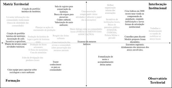 Diante da construção do diagnóstico realizado na microrregião e posteriormente da agenda, traçados os aspectos iniciais a serem trabalhados e as responsabilidades divididas, as ações posteriores tiveram algumas constatações por meio da percepção dos atores no território e de suas inter-relações: