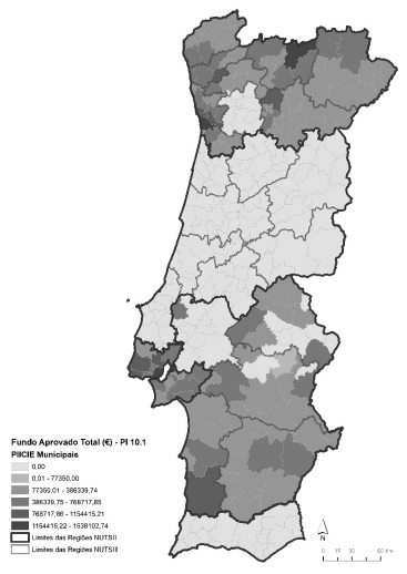 Há três municípios com fundos totais aprovados num valor acima de 1 154 415,22€: Vila Nova de Gaia e Chaves, na região Norte, e Lisboa. Ainda que longe dos valores máximos de cofinanciamento dos Municípios na região Norte e na Área Metropolitana de Lisboa, Odemira é o Município do Alentejo com um fundo total aprovado mais elevado (868 378,63€).