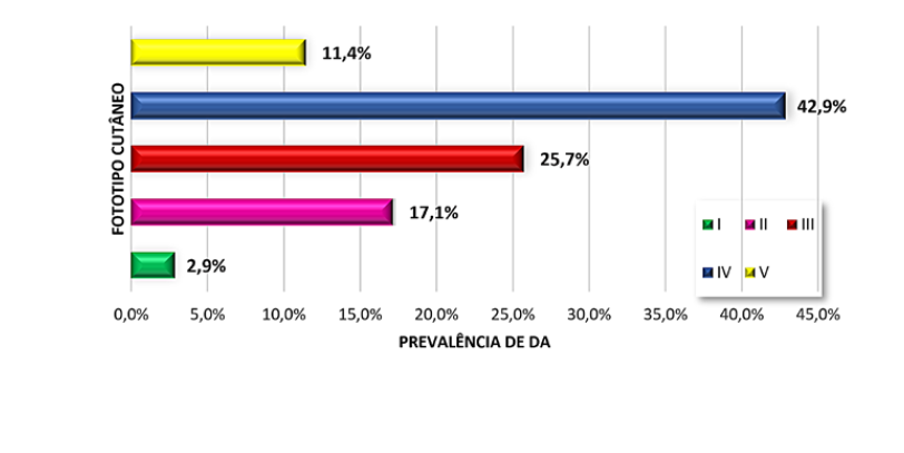 Quanto ao fototipo, o predomínio de um fototipo cutâneo mais alto nesse estudo pode se justificar na grande miscigenação racial observada em nossa população. Estudos anteriores também já demonstraram estigmas atópicos correlacionados a fototipos mais elevados.24