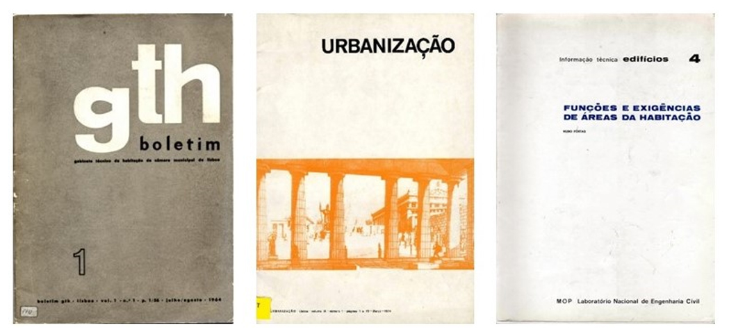 Em Portugal, a legislação para a criação das cadeiras de Urbanologia (15ª) e de Projetos e Obras de Urbanização (16ª) entrou em vigor em 1945 (DL, 1945), com o objetivo de reforçar a formação de arquitetos-urbanistas (Marat-Mendes et al., 2014). Estas cadeiras foram introduzidas nas Escolas de Belas Artes de Belas Artes de Lisboa e do Porto em 1945. No Porto, a 15ª cadeira teve como seu primeiro professor António Brito e Cunha (1946-1961) e a 16ª cadeira, David Moreira da Silva (1945-1961). Em Lisboa, ambas as cadeiras tiveram como primeiro professor Paulino Montez (1946-1967) (Moniz, 2011). No curso de Engenharia Civil ministrado no Instituto Superior Técnico, a inclusão da cadeira de Urbanização ocorreu dez anos mais tarde, em 1955 (Portas e Gonçalves, 1979; Abreu, 1973). Foi precisamente por esta altura que a investigação relacionada com estas temáticas começou a ganhar maior notoriedade (e aplicabilidade). Dada a inexistência do desejado Instituto de Urbanismo - “destinado a administrar a engenheiros e arquitetos conhecimentos especializados de Urbanologia” (DL, 1950) -, o Gabinete Técnico na Habitação da Câmara Municipal de Lisboa (GTH, 1959-1969), o Centro de Estudos de Urbanismo e Habitação Engenheiro Duarte Pacheco (CEUH, 1963-1977) e o Laboratório Nacional de Engenharia Civil (LNEC, a partir de 1961 até aos nossos dias) iniciam a pesquisa científica neste domínio. No GTH a investigação centrava-se em dar resposta a implementação de três grandes operações urbanísticas - Olivais Norte, Olivais Sul e Chelas -, impulsionadas pela implementação do DL Nº 42.454 (1959); no CEUH procurava-se conhecer o que se fazia nos “países civilizados” para um mais correto ordenamento do território nacional (Gil, 2019; Oliveira, 1966); no LNEC, a investigação e os estudos experimentais levados a cabo tinham em vista “o progresso da engenharia civil, exercendo a sua ação fundamentalmente nos domínios das obras publicas, da habitação e urbanismo” (DL, 1979). O trabalho de investigação produzido dentro de cada um destes organismos foi disseminado a partir de publicações periódicas, como o Boletim do GTH e a revista Urbanização do CEUH, bem como a partir de Relatórios Técnicos, Informações Técnicas e Memórias no caso do LNEC (Figuras 1).