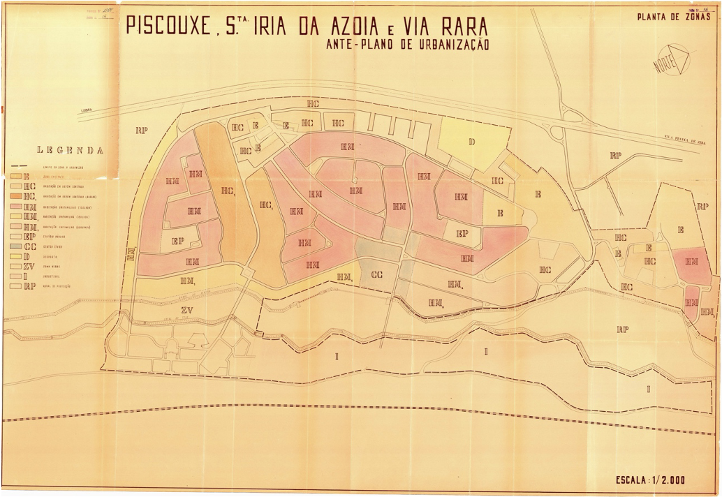 Anticipating this type of demographical change (prior to its confirmation) Gröer’s 1947 Foreplan established the infrastructure of the territory, setting a large urbanization area merging the villages of Pirescoxe and Via Rara to Santa Iria da Azóia into a larger town, with a surrounding rural buffer and a large industrial estate on the waterfront. But the territory told a different story from the start, since the first modern spatial structure actually stemmed from the factory and not around the existing urban core.