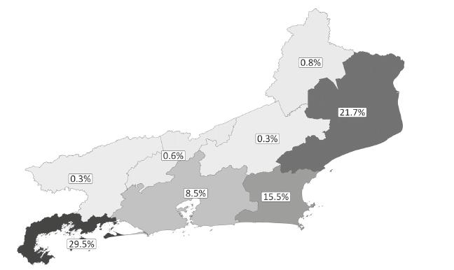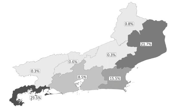 Figura 1 Participação Percentual do Emprego Formal na Economia do Mar por Região Administrativa
